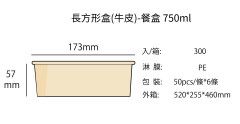 長方形牛皮餐盒 750ml